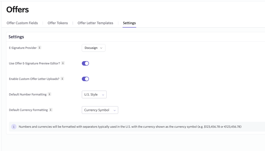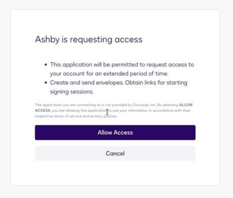 You can integrate your Ashby account with your company’s Docusign account, allowing you to send e-signature offers and documents via Docusign, rather than using Ashby’s default Dropbox Sign option.