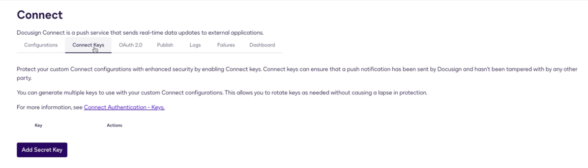 Click Connect, then Connect Keys. Note: if you are unable to find the Connect section, see the guidance here.