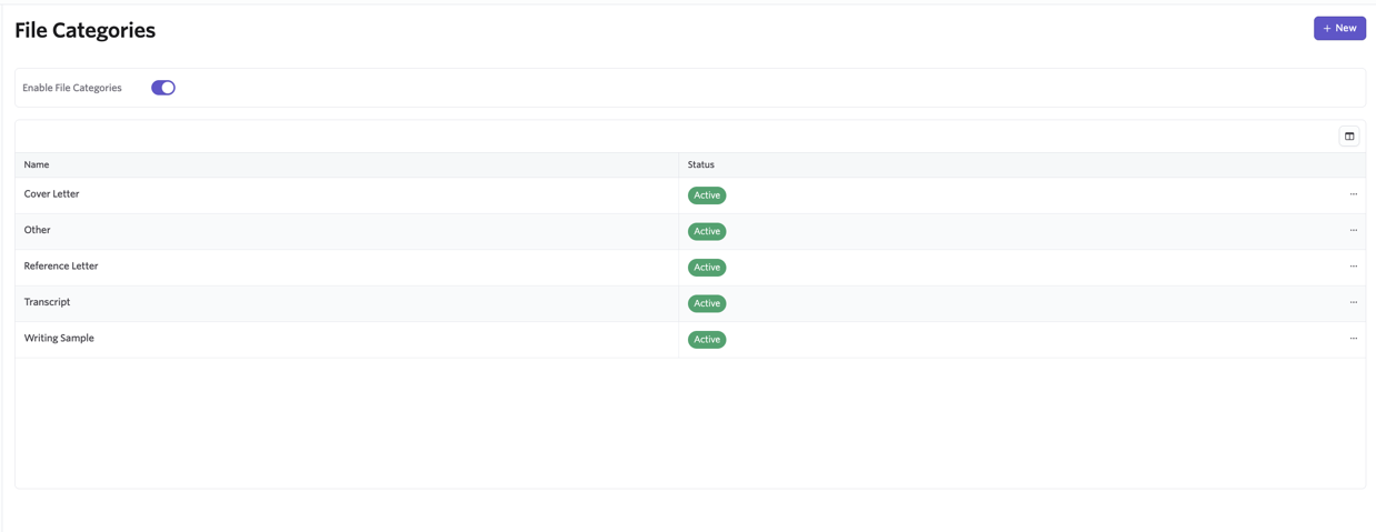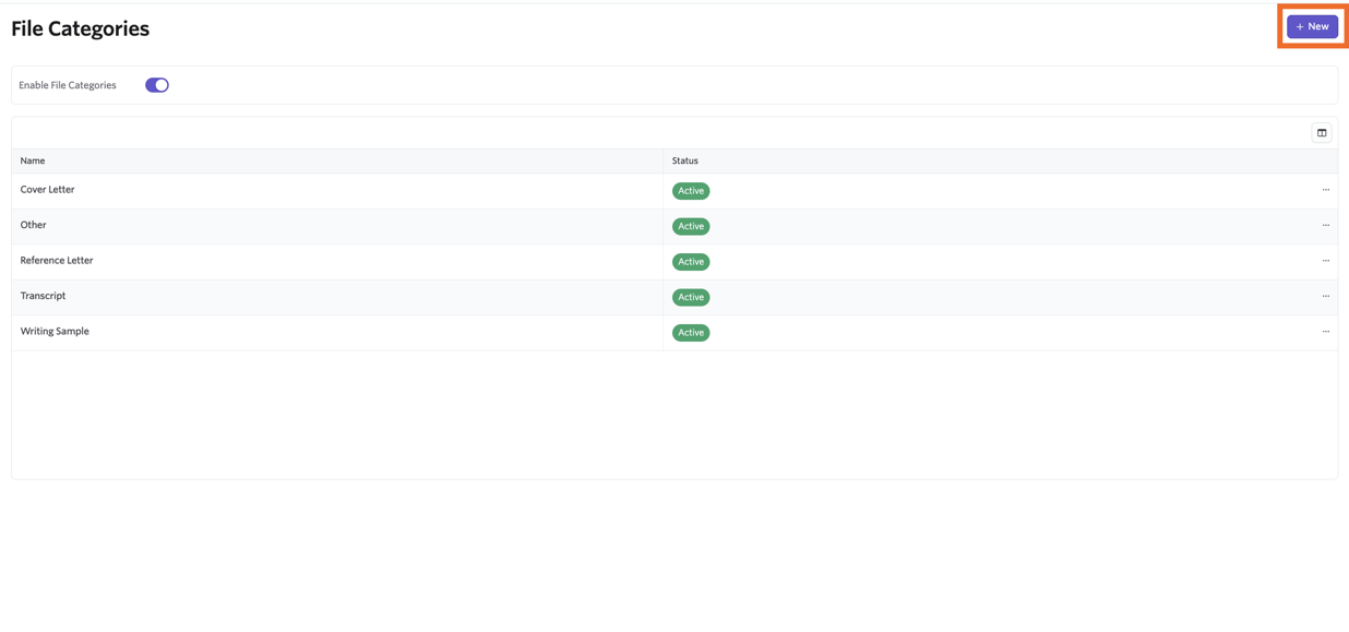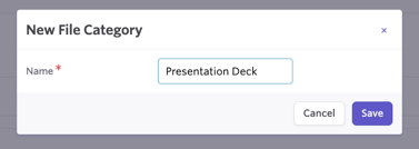 To create a new file category, click + New. You’ll then be able to give you category a name. Click Save to confirm and create your new file category.
