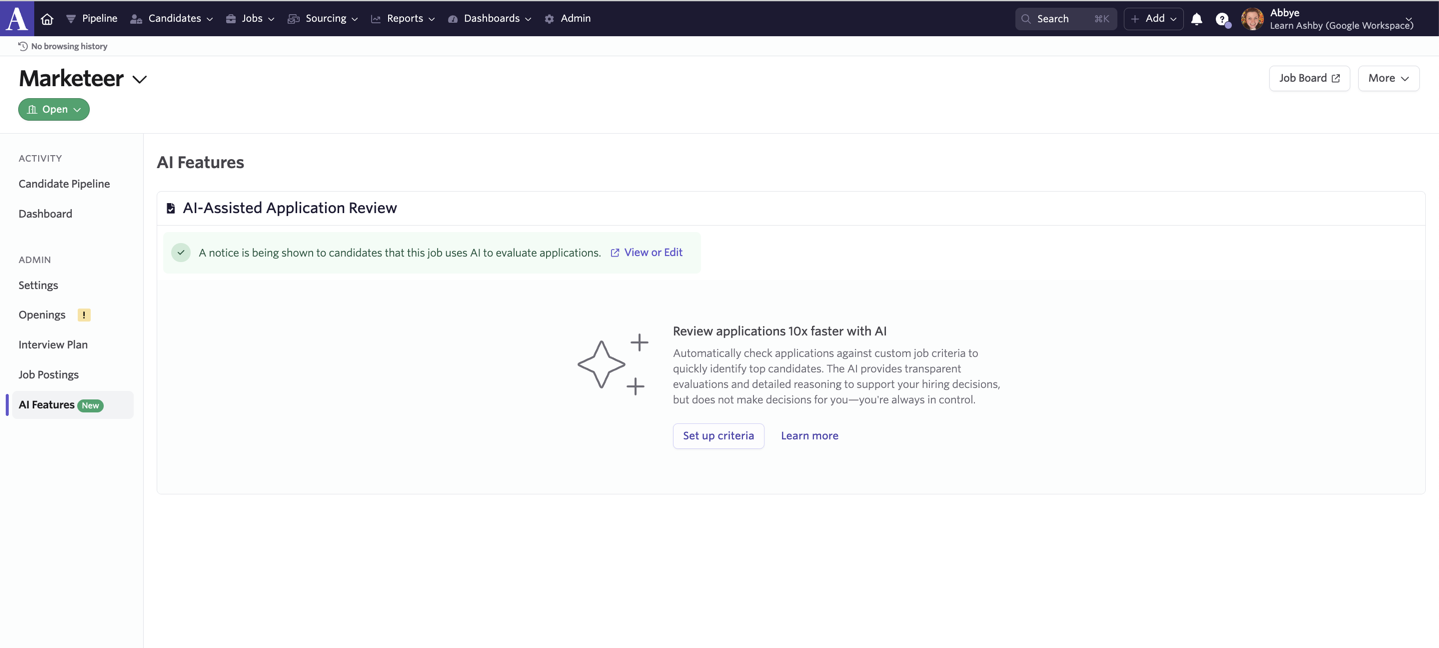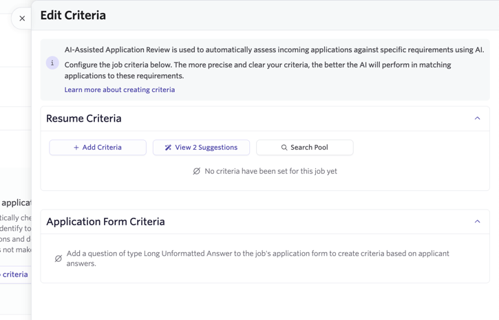 <aside> 💡 You can now accelerate candidate reviews by using AI to evaluate candidates in Application Review based on criteria you set.
