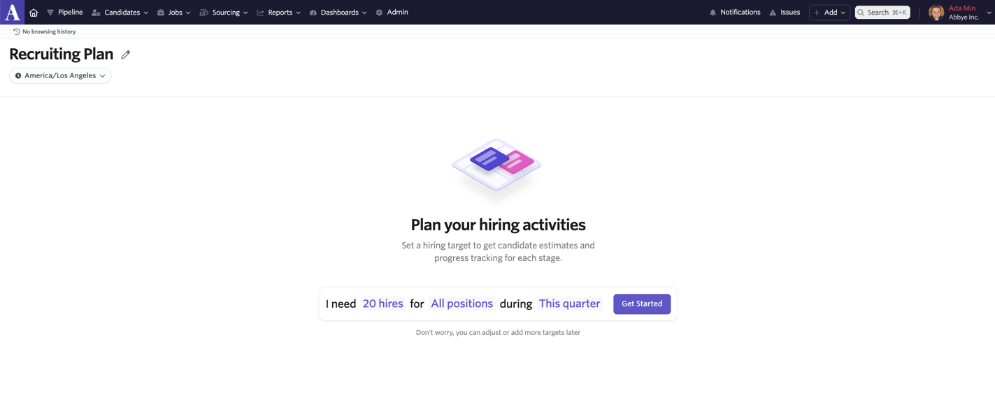 The Recruiting Planner template report allows you to plan required recruiting activities based on historical performance, input headcount goals, and a hiring date range (e.g. this quarter). Ashby will then compute the total available time available to achieve your target headcount hires while incorporating the customizable passthrough rates to summarize the total number of activities at each stage required to hit those goals. Additionally, the overall goals will be presented as a weekly pace of events to better understand the required weekly efforts.